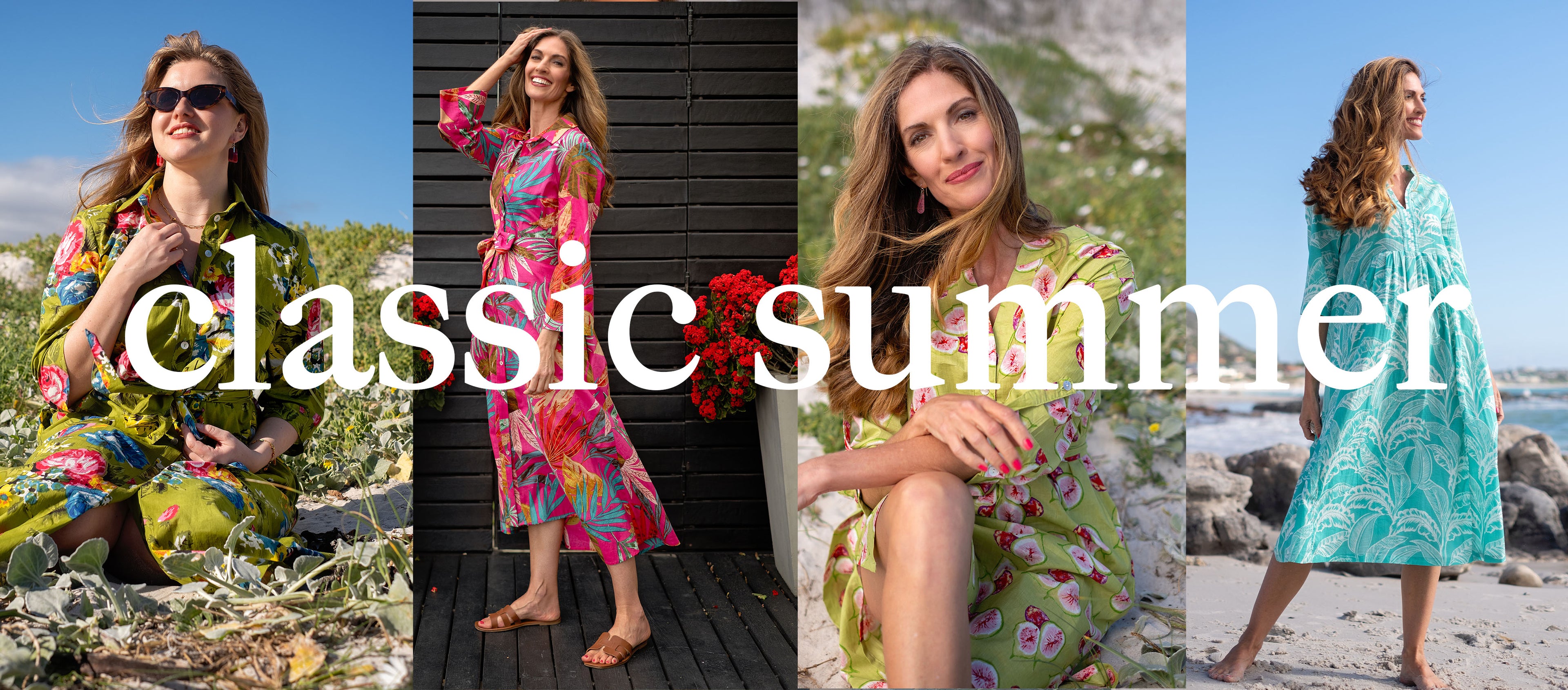 Each collection is designed with real women in mind, made from high-quality fabrics like 100% Indian cotton and imported viscose from Spain. Most garments are made right here in Cape Town by our incredible CMT teams, while our Imported Collection is brought to life in India, where Martie works closely with our team to ensure every detail is Iconic-perfect.