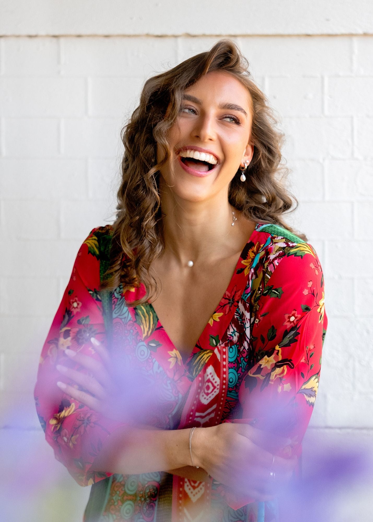 The Gloria kaftan dress features elegantly tucked sleeve details and a relaxed, flowing fit that offers both comfort and style.