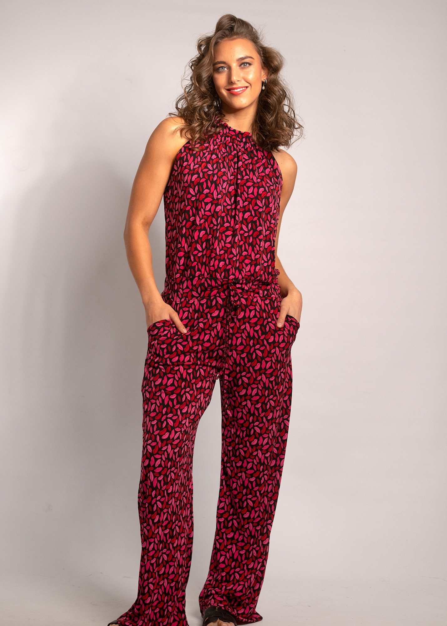 Halterneck jumpsuit, Black and Red