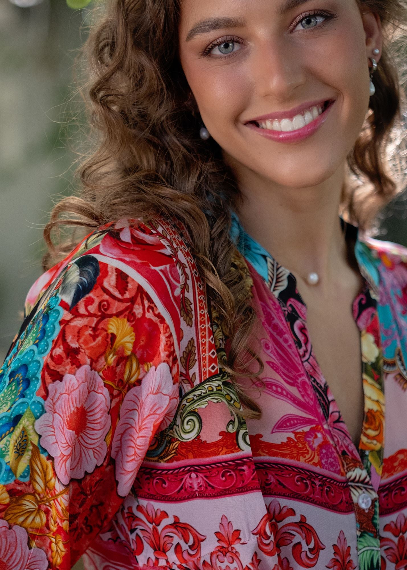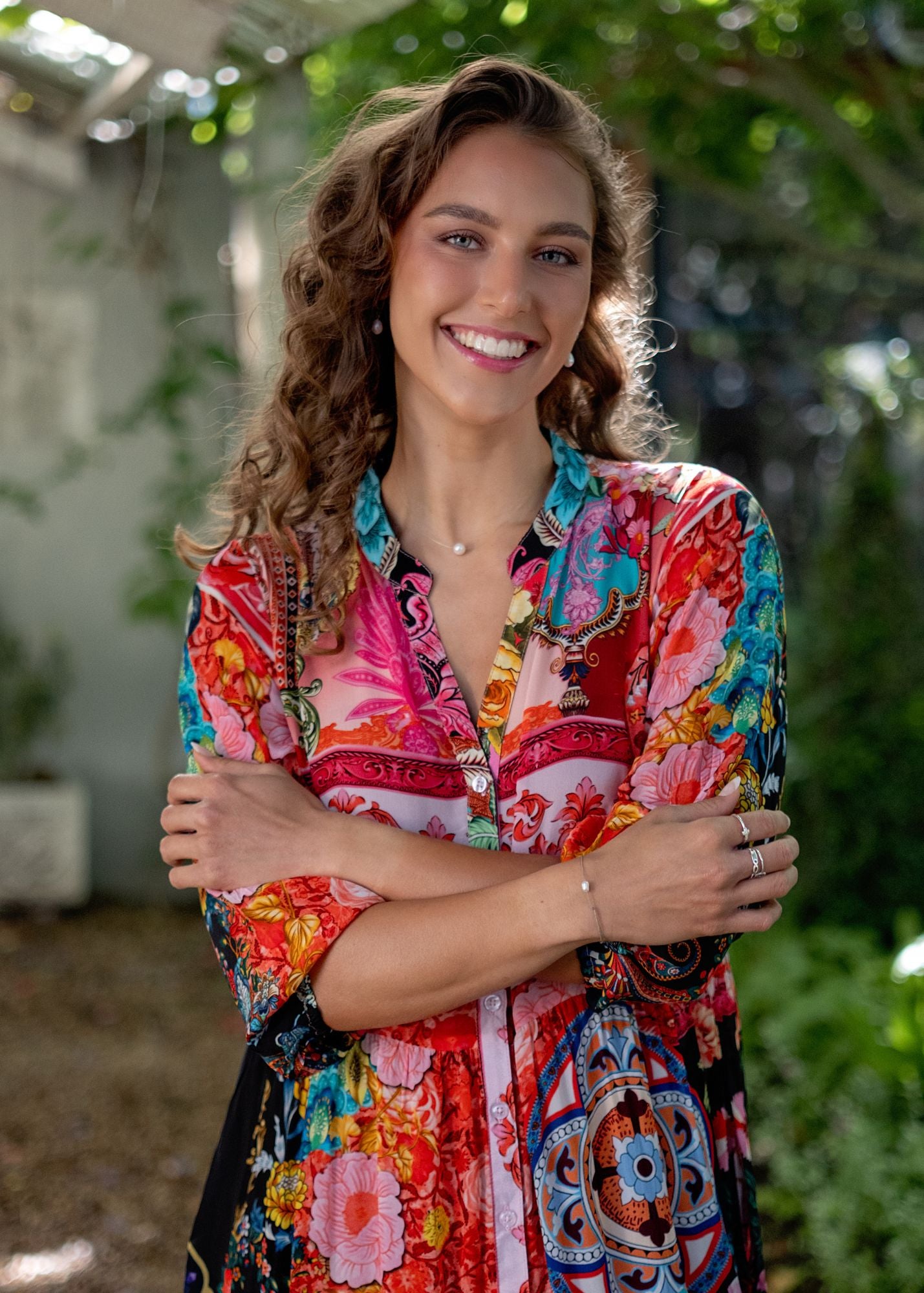 The button-down front, mandarin collar, and playful Elasticated sleeves keep things chic yet relaxed, while the vibrant patchwork-style print brings a burst of colour from top to hem. Perfect for summer days, garden gatherings, weekend markets, or just adding a little drama to your everyday dressing.
