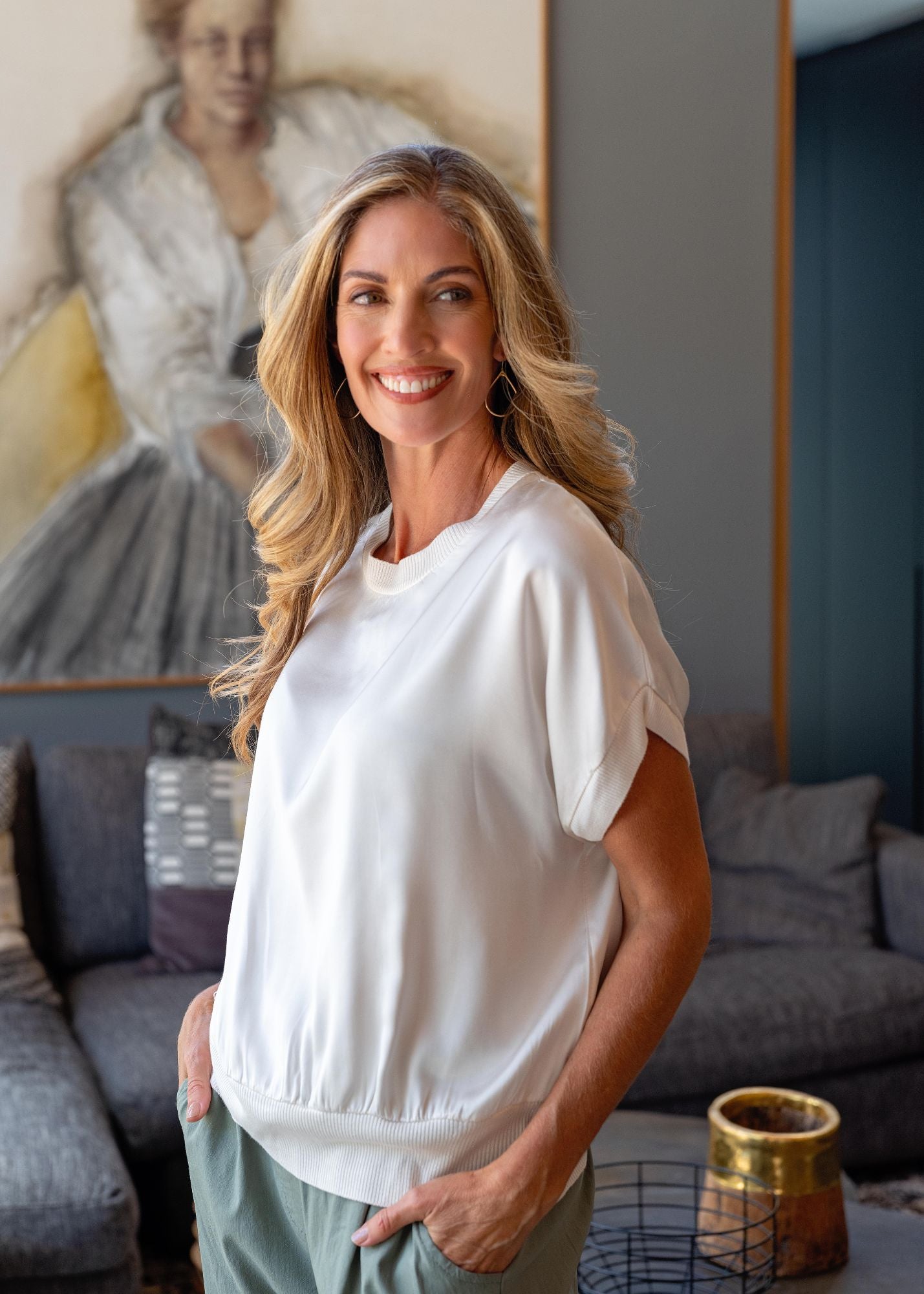 Designed with a classic crew neckline and a softly draped silhouette, it offers the perfect balance between relaxed comfort and polished style. Lightweight and breathable, it’s ideal for layering or wearing on its own through every season.