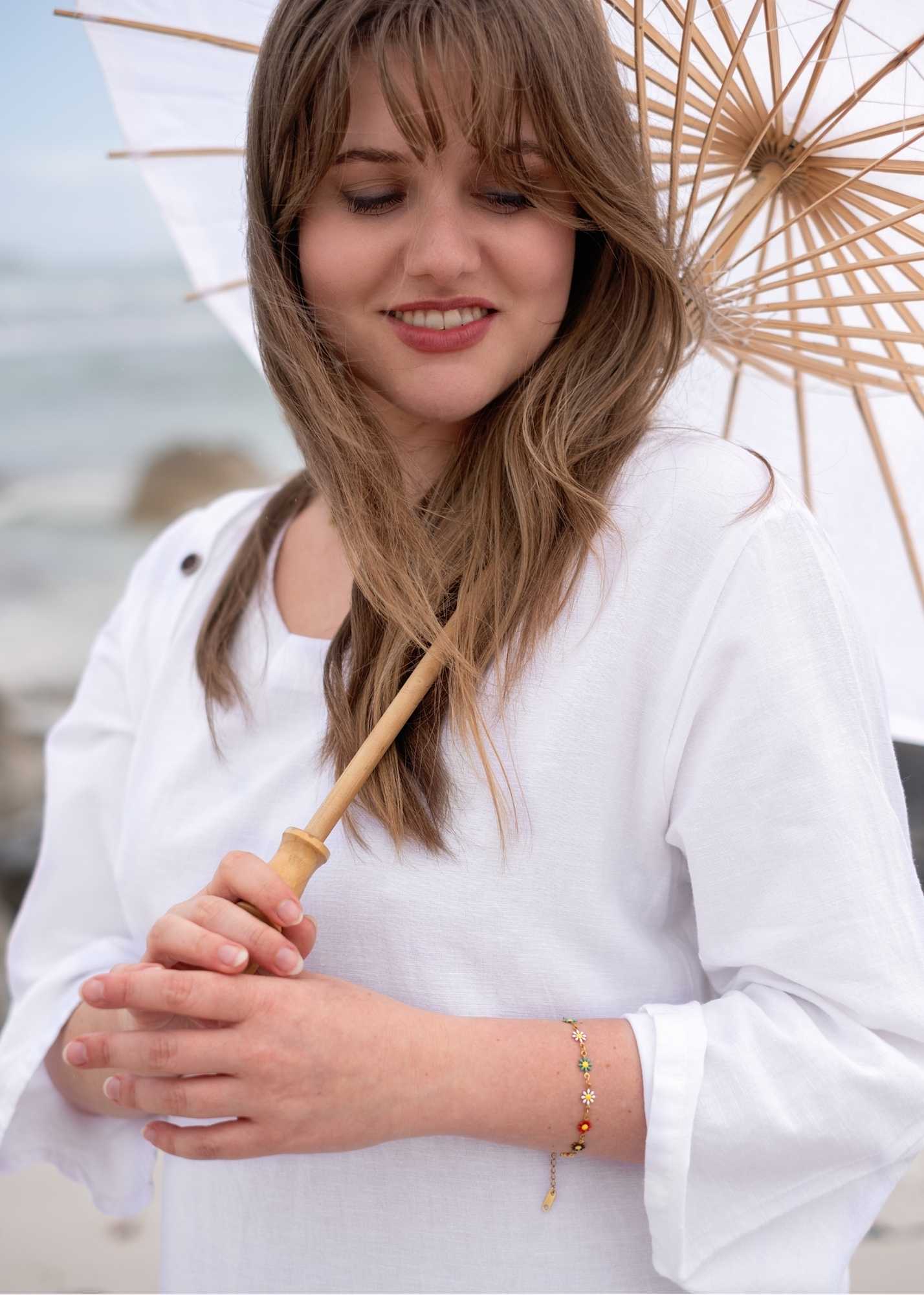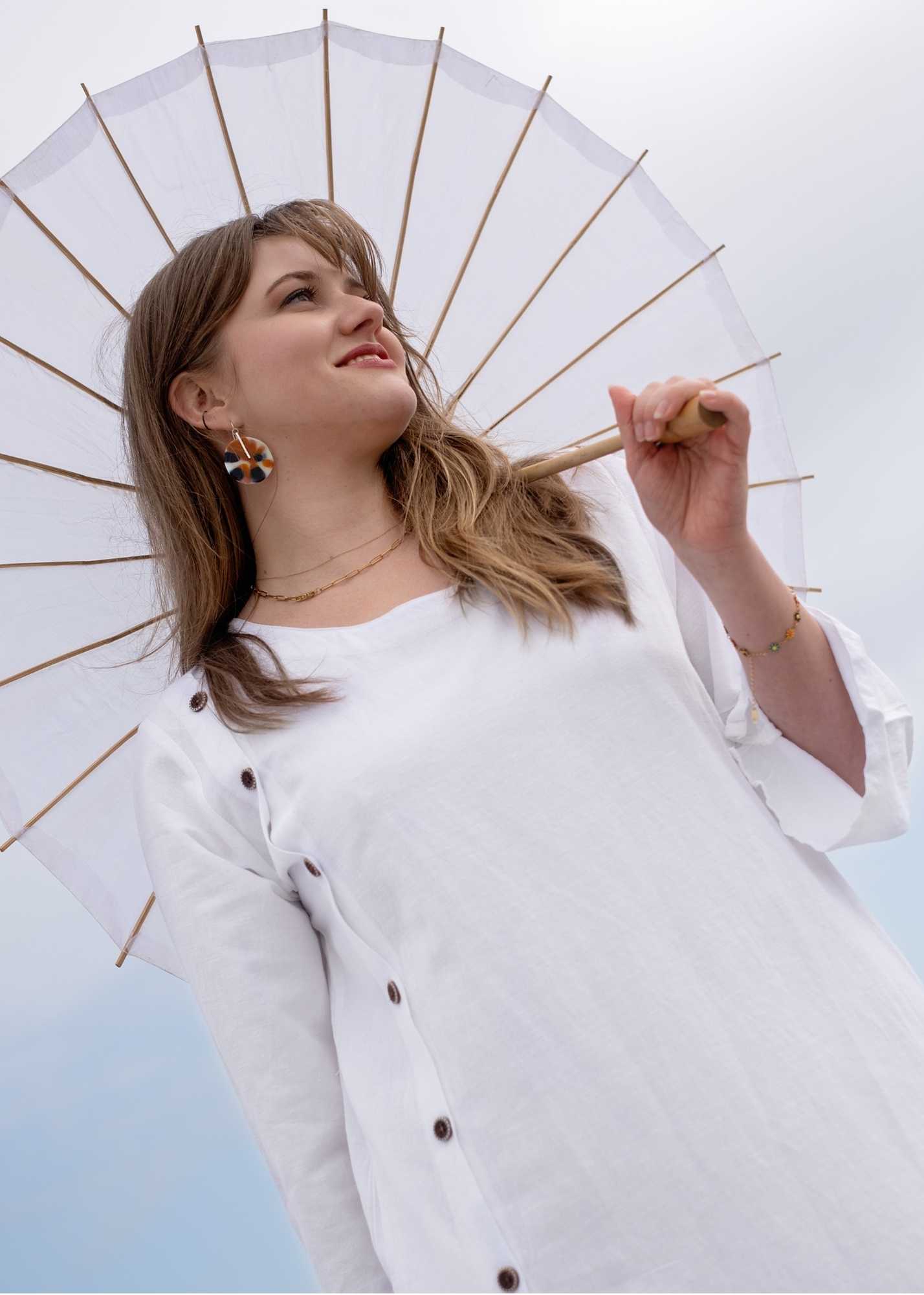 Experience effortless style with the Vernazza Dress in Sandstone. Crafted from 100% breathable linen, this tunic-style dress features a relaxed fit and a comfortable round neckline. Wide sleeves with elegant button details on the sides add a unique touch, making it perfect for both casual outings and laid-back gatherings. Embrace comfort without sacrificing style in this versatile wardrobe essential.